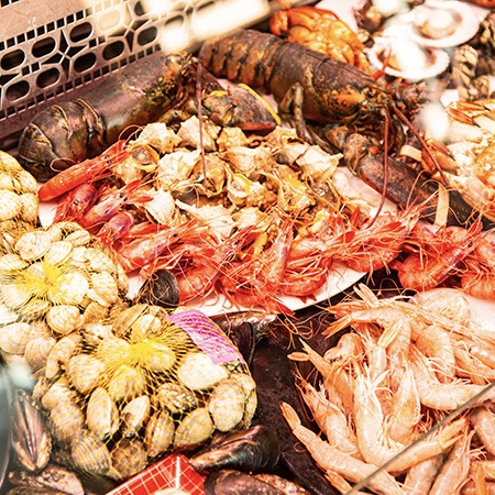 De la tierra y del mar, trabajamos con agricultores y ganaderos de la zona y bajamos a la lonja a comprar.